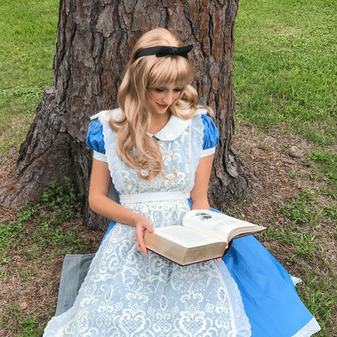 Alice will regale your guests with her adventures in Wonderland, lead the children in exciting games such as Alice Says, Charades, and Follow the Leader and hold a caucus race in which there are no rules whatsoever and the birthday child always wins! She loves making new friends and can't wait for her next adventure with you!